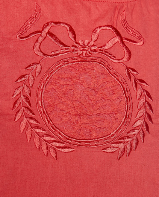 Họa tiết thêu trước ngực tinh tế, cầu kỳ, sang trọng.