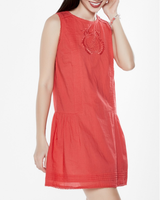 Đầm Sát Nách Thêu Họa Tiết form suông đơn giản.