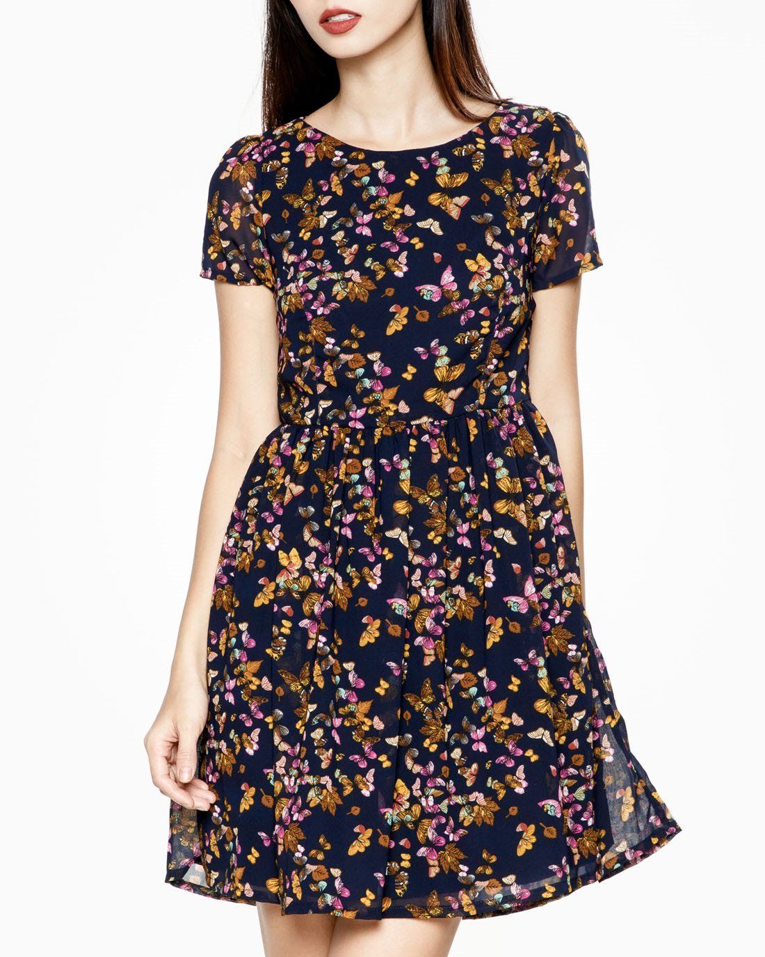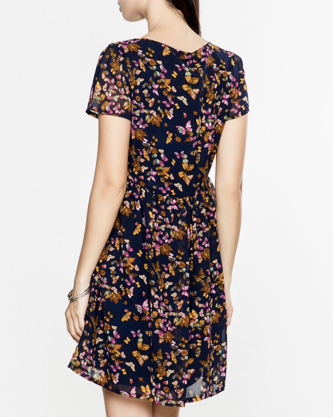 Đầm xòe tay ngắn hoa nhí kiểu dáng đơn giản, phù hợp mọi dáng người.