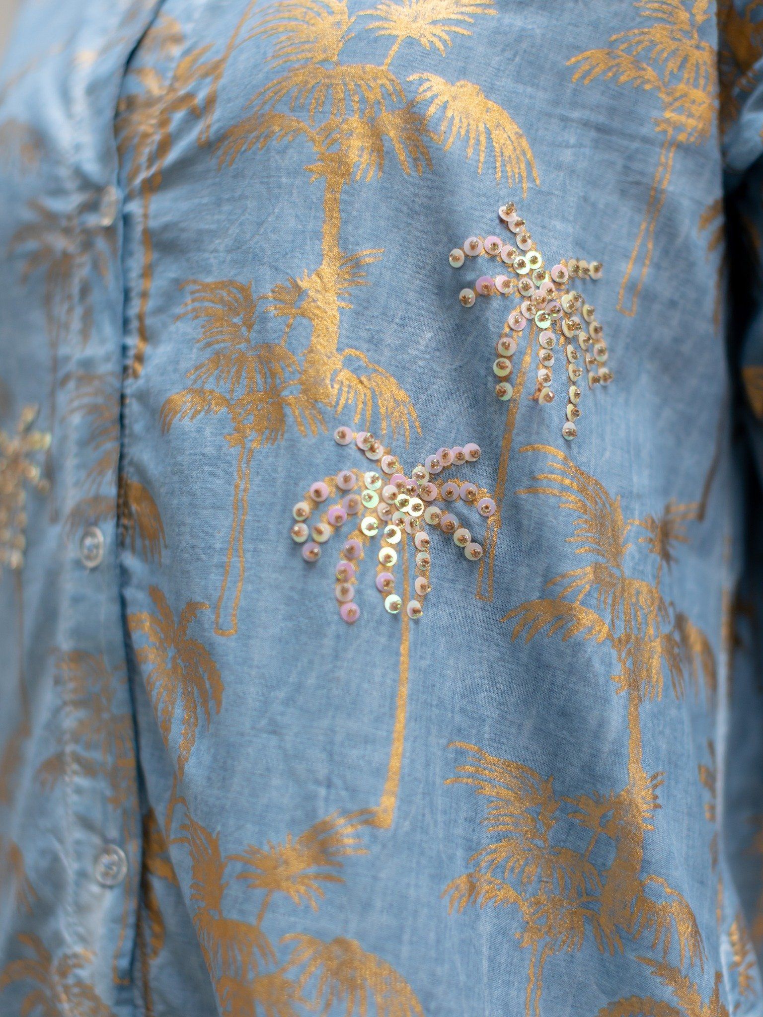 Đầm Dài Tay Kết Hạt Vẽ Ánh Kim Cotton Isla Bonita