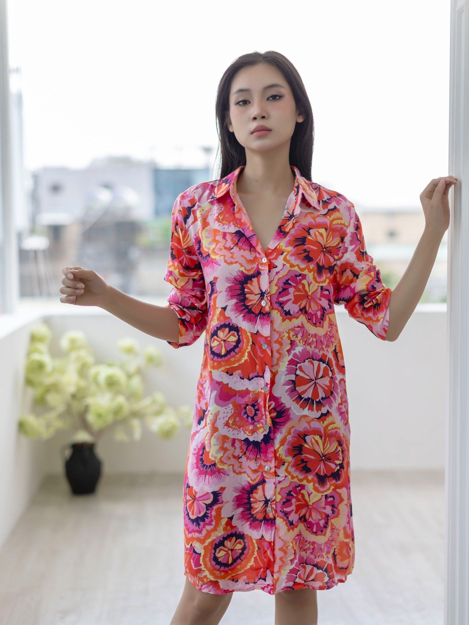 Đầm Sơ Mi Hoa Cotton Cao Cấp Luna Llena