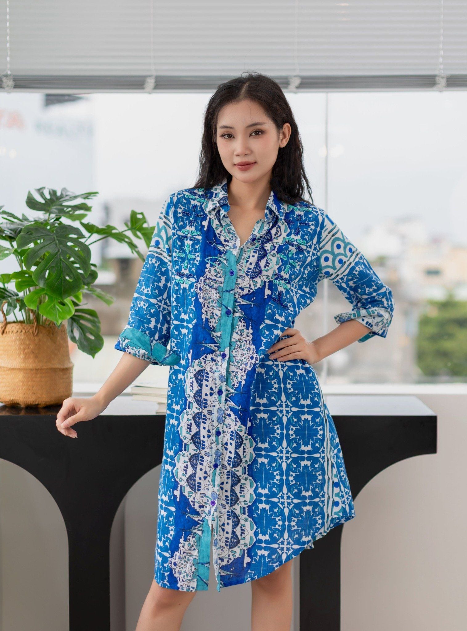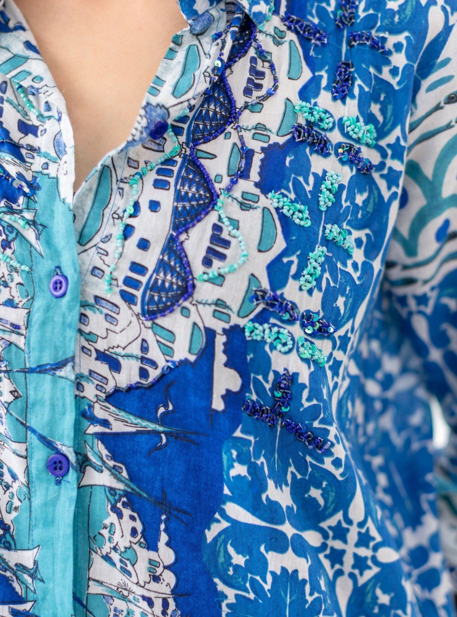 Maxi Sơ Mi Xanh Cotton Isla Bonita