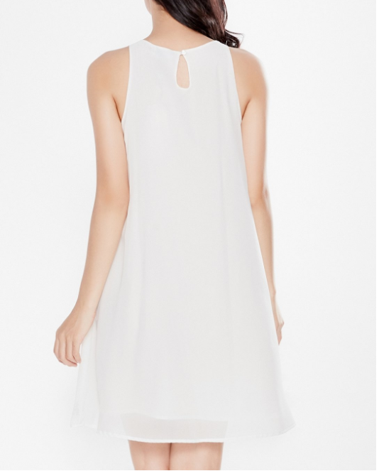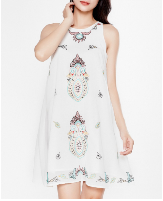 Đầm suông họa tiết thêu đối xứng tỉ mỉ, sang trọng.