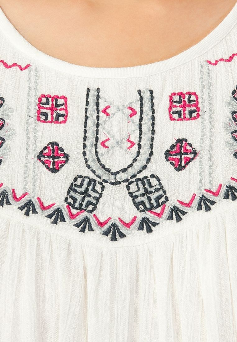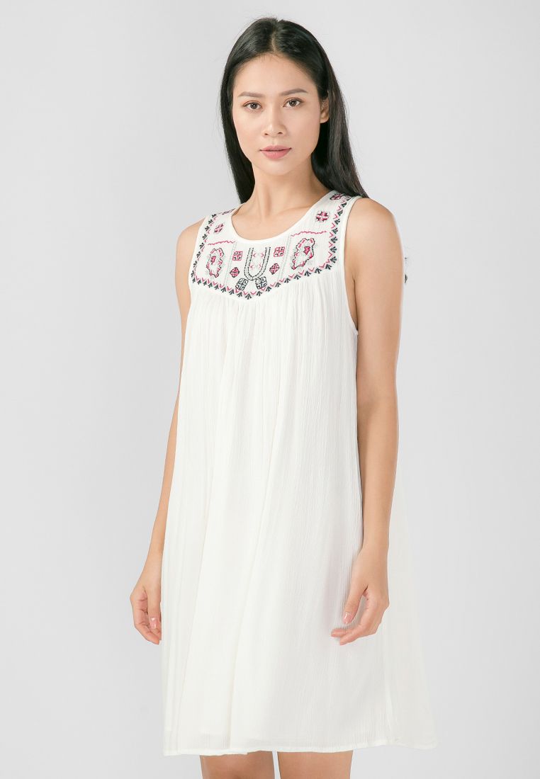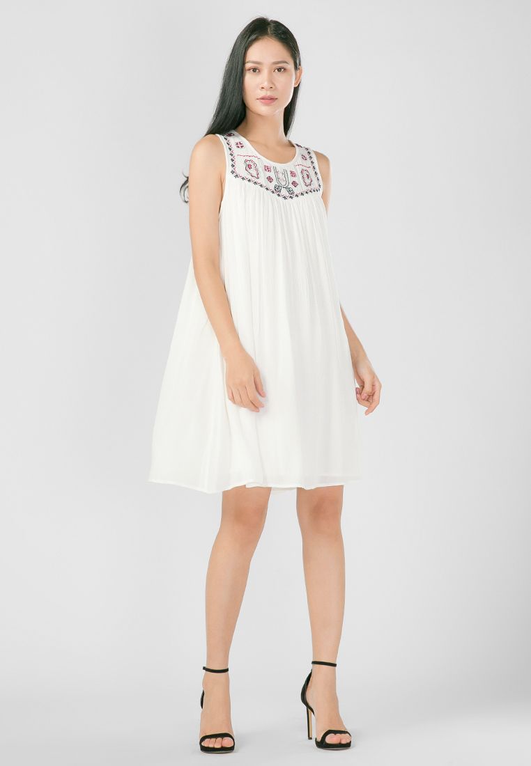 Đầm suông kết hợp họa tiết thêu trước ngực nữ tính và thời trang.