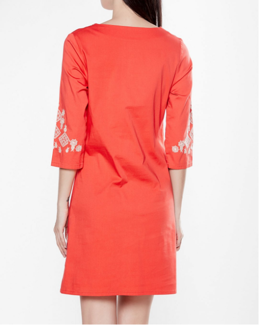 Đầm Suông Tay Lửng thiết kế cổ tròn xẻ V.