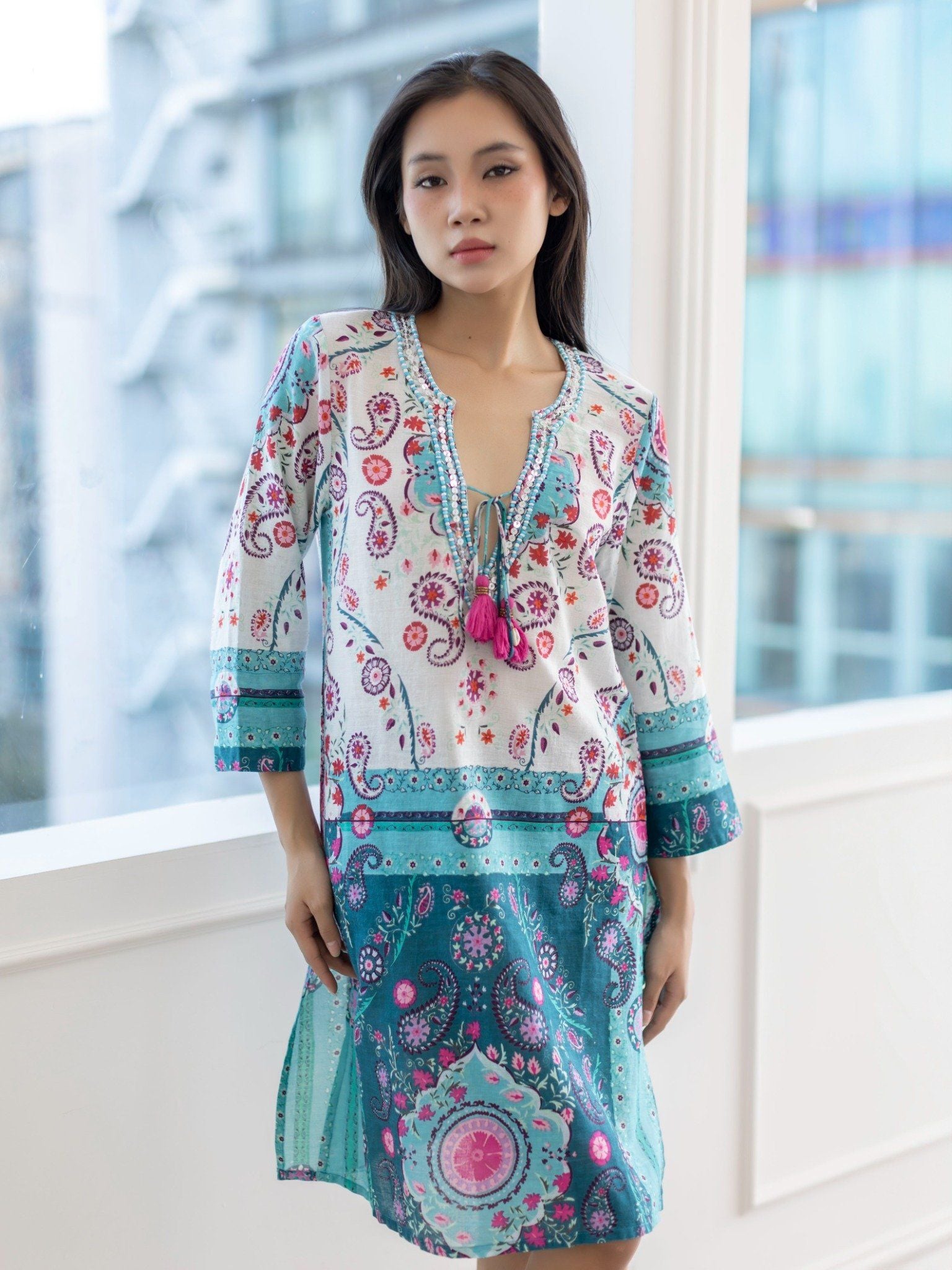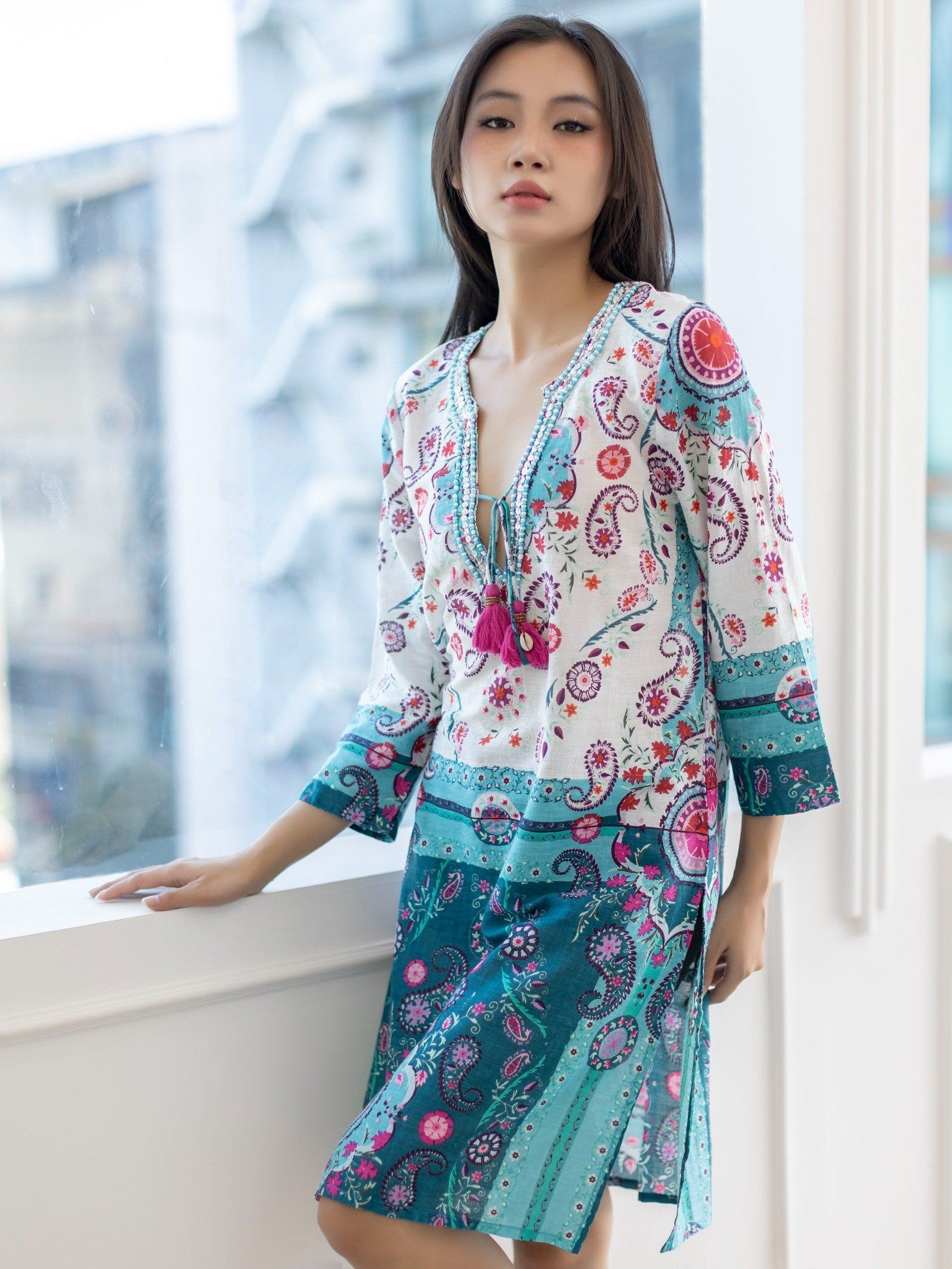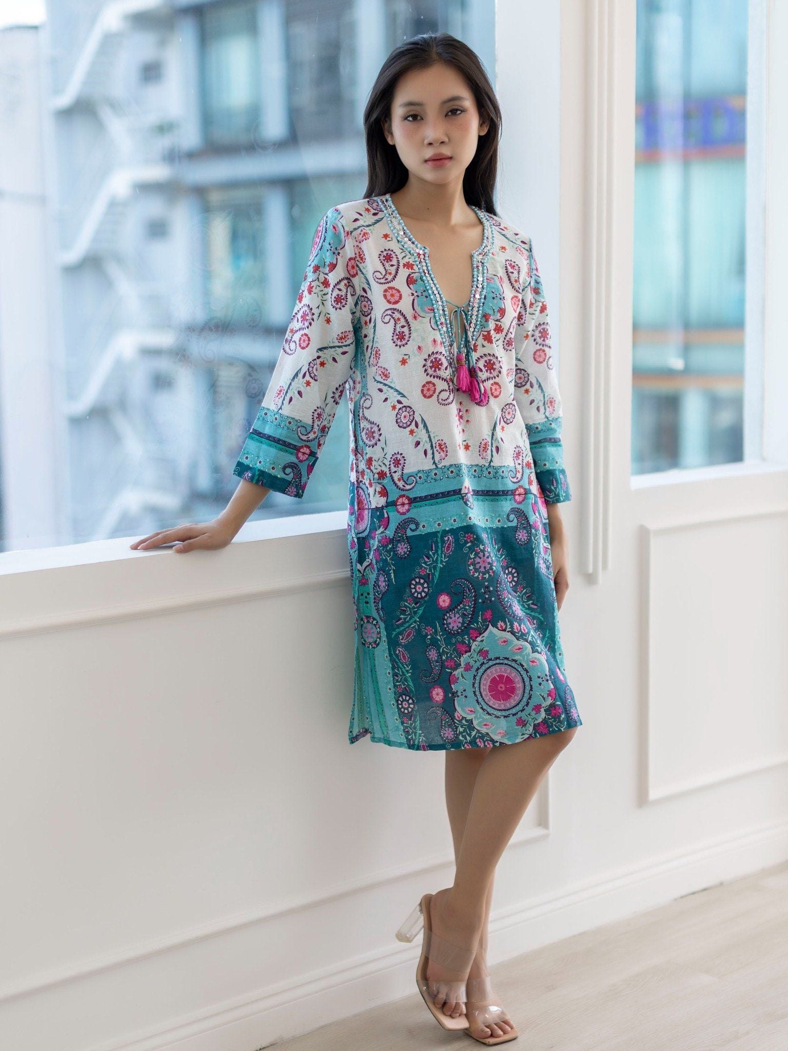Đầm Xẻ Tà Kết Cườm Cotton Isla Bonita