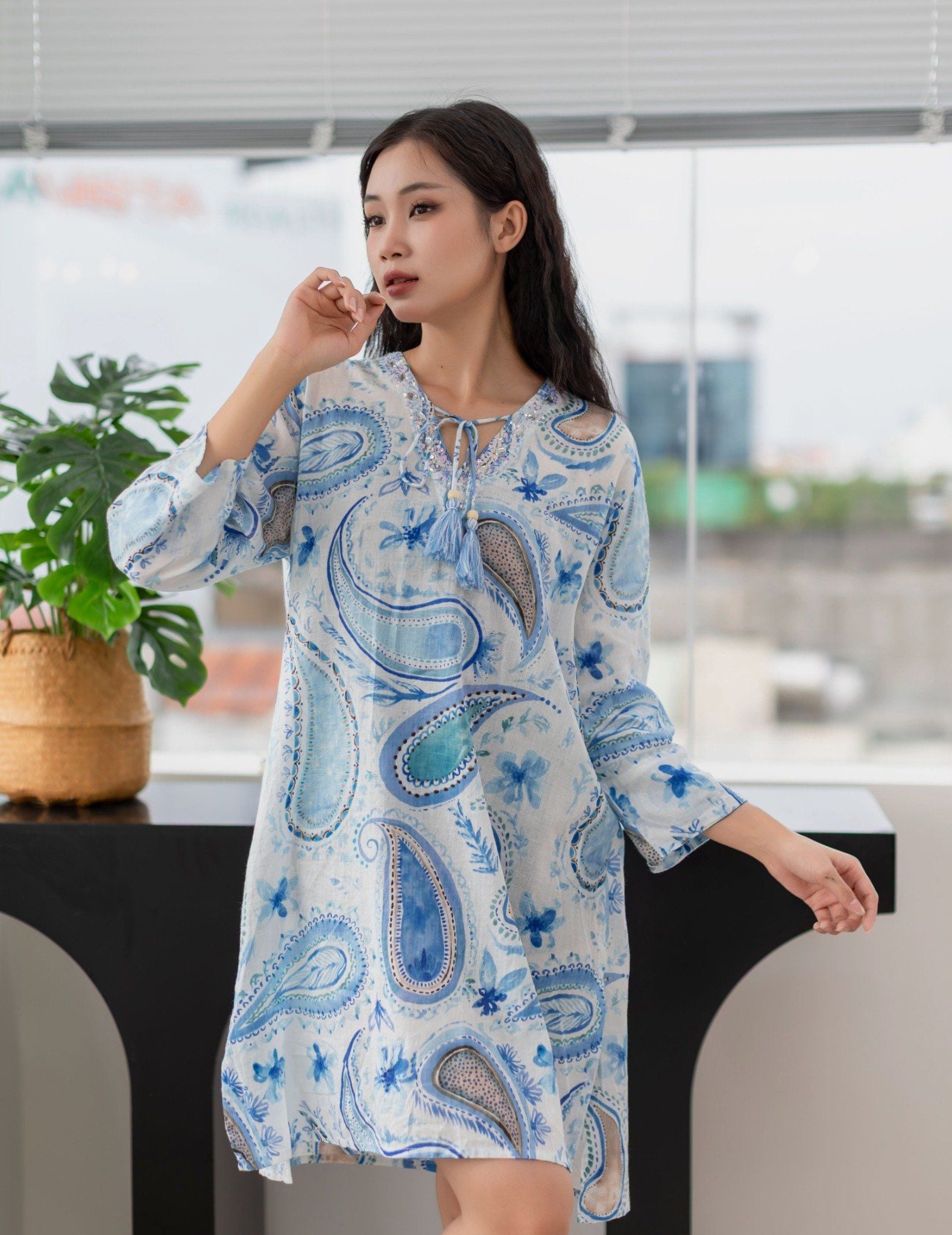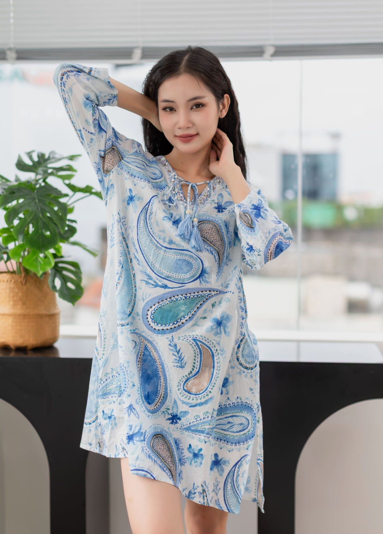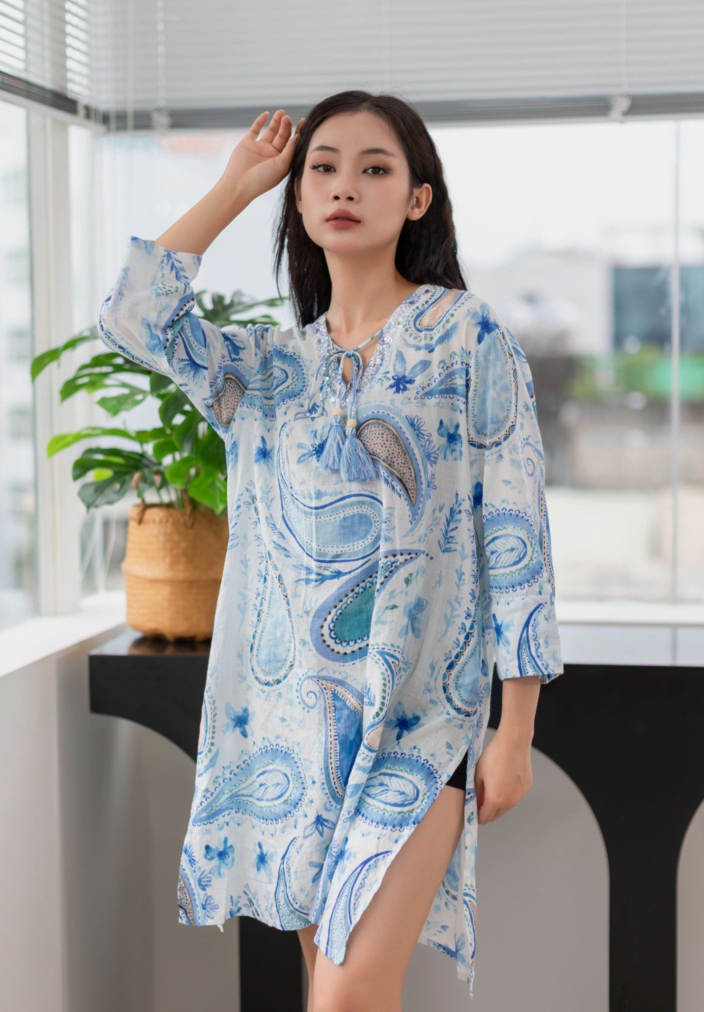 Maxi Sơ Mi Xanh Cotton Isla Bonita