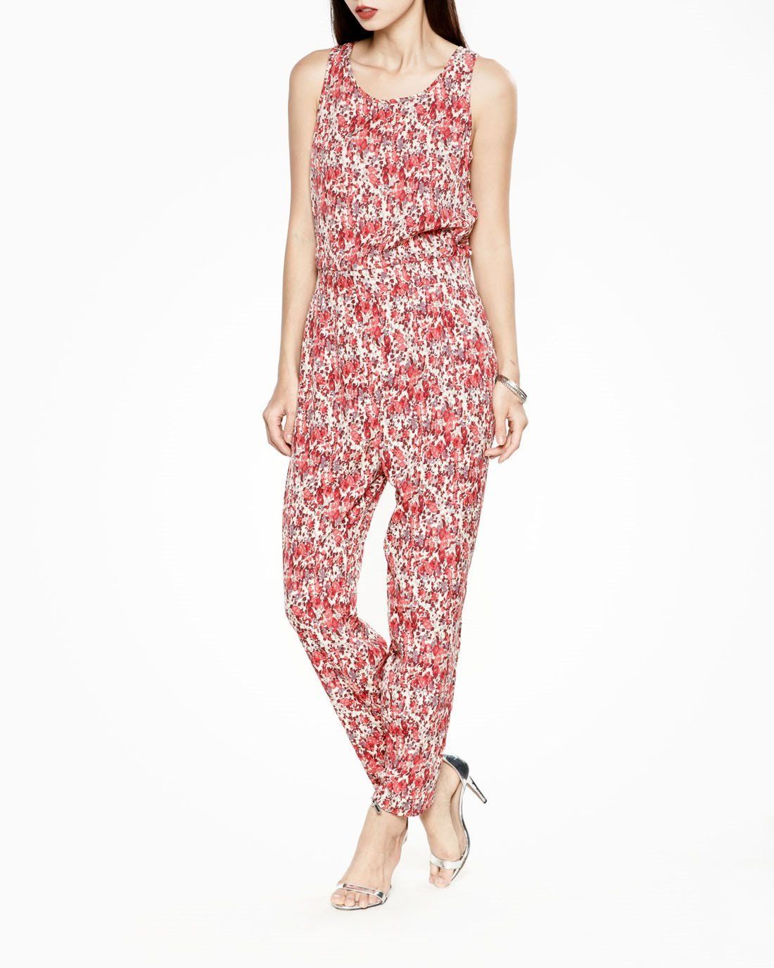 Jumpsuit họa tiết hoa đỏ trẻ trung, sành điệu, phù hợp với những cô nàng năng động, phá cách.