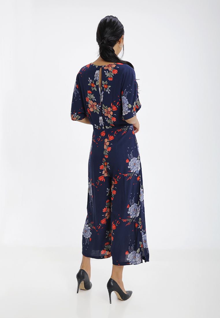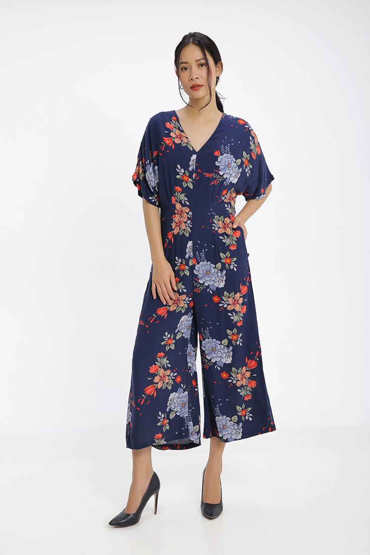 Jumpsuit họa tiết hoa lá nổi bật sang trọng, thời trang.