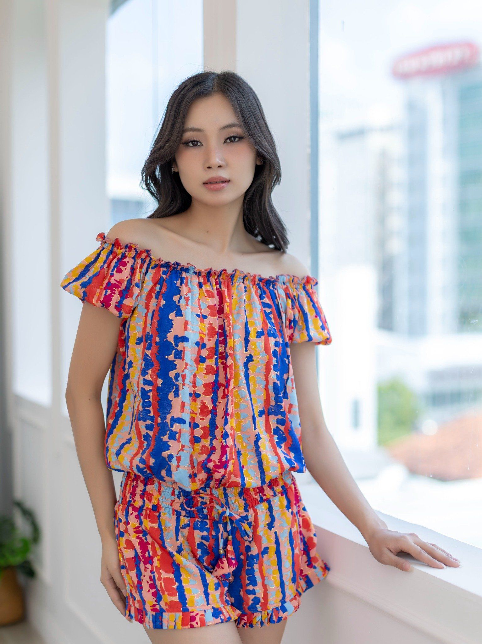 Jumpsuit Trễ Vai Vẽ Ánh Kim Isla Bonita