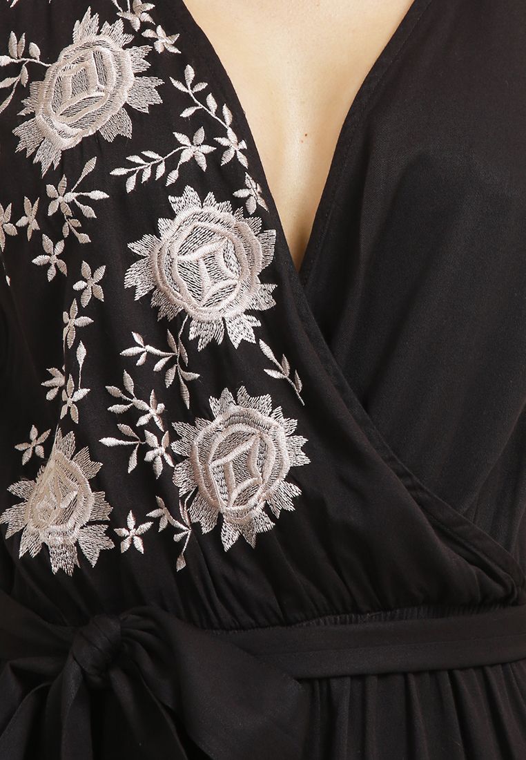 Jumpsuit họa tiết thêu hoa nổi bật sang trọng, thời trang.