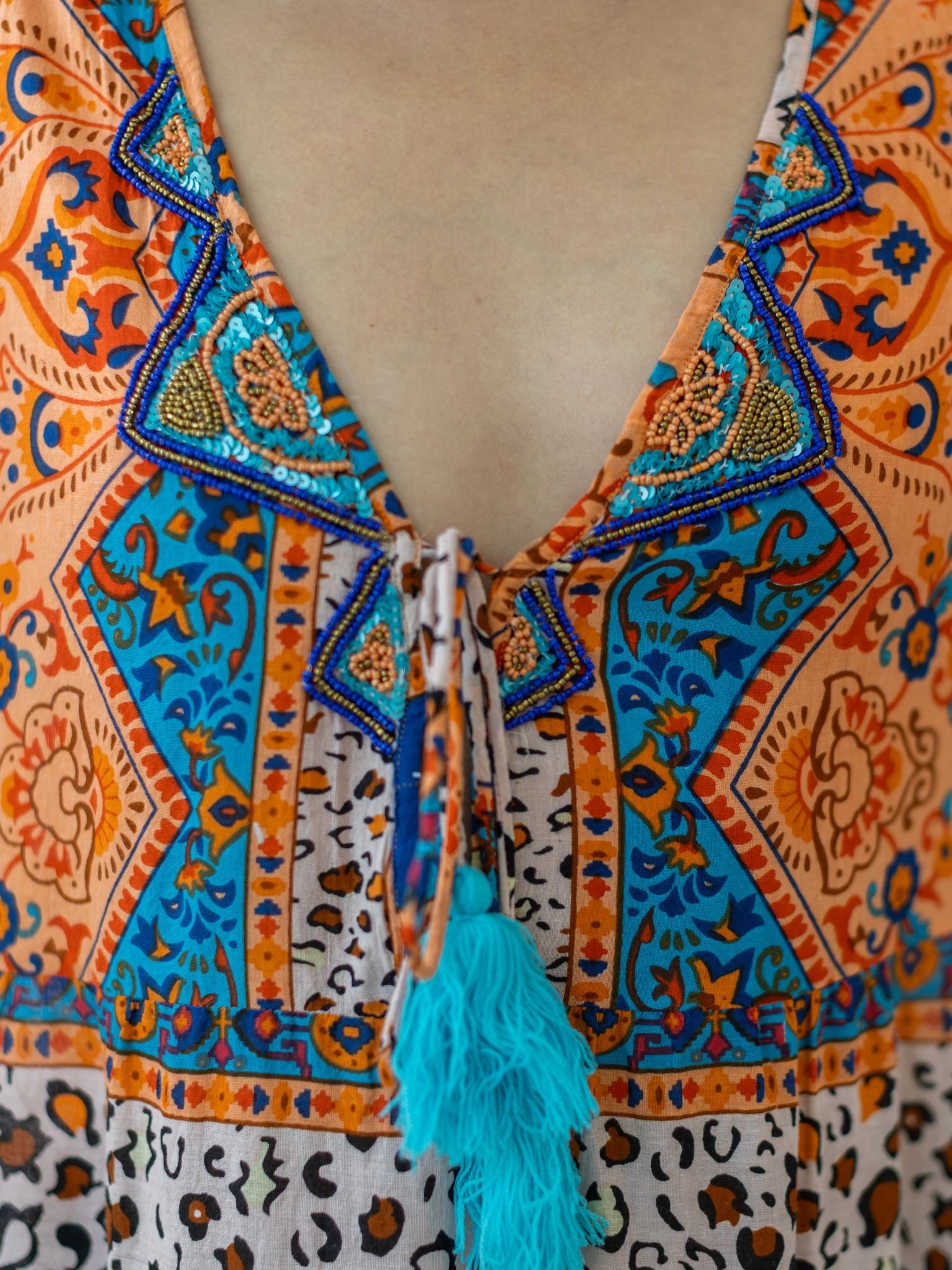 Maxi Boho Kết Cườm Cotton Isla Bonita