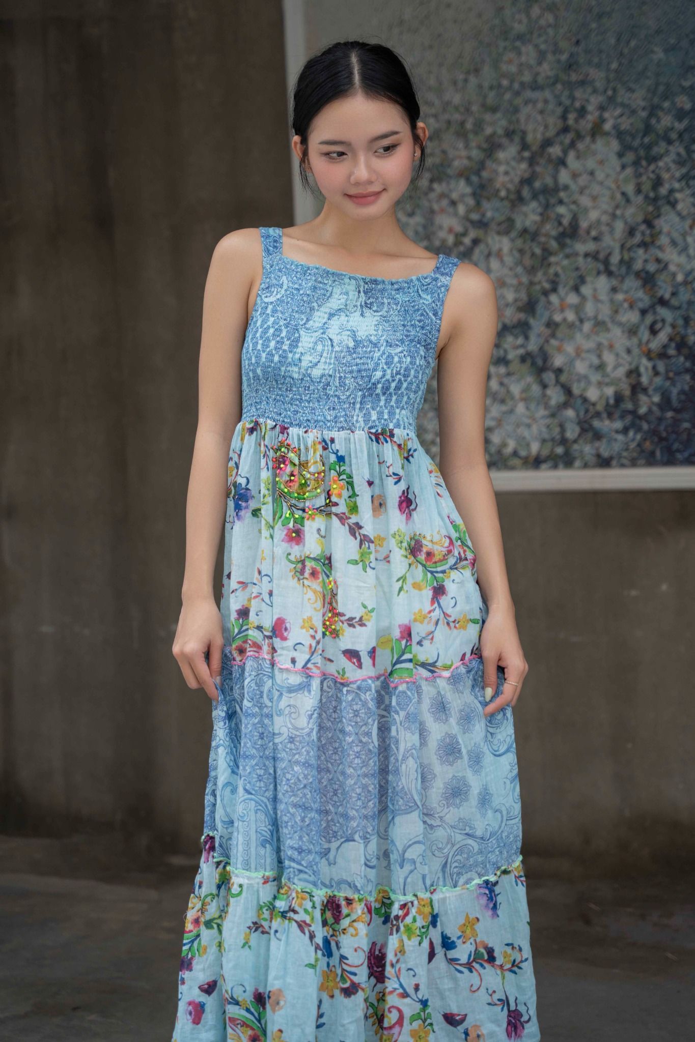 Maxi Thêu Tay Kết Cườm Cao Cấp Cotton Isla Bonita