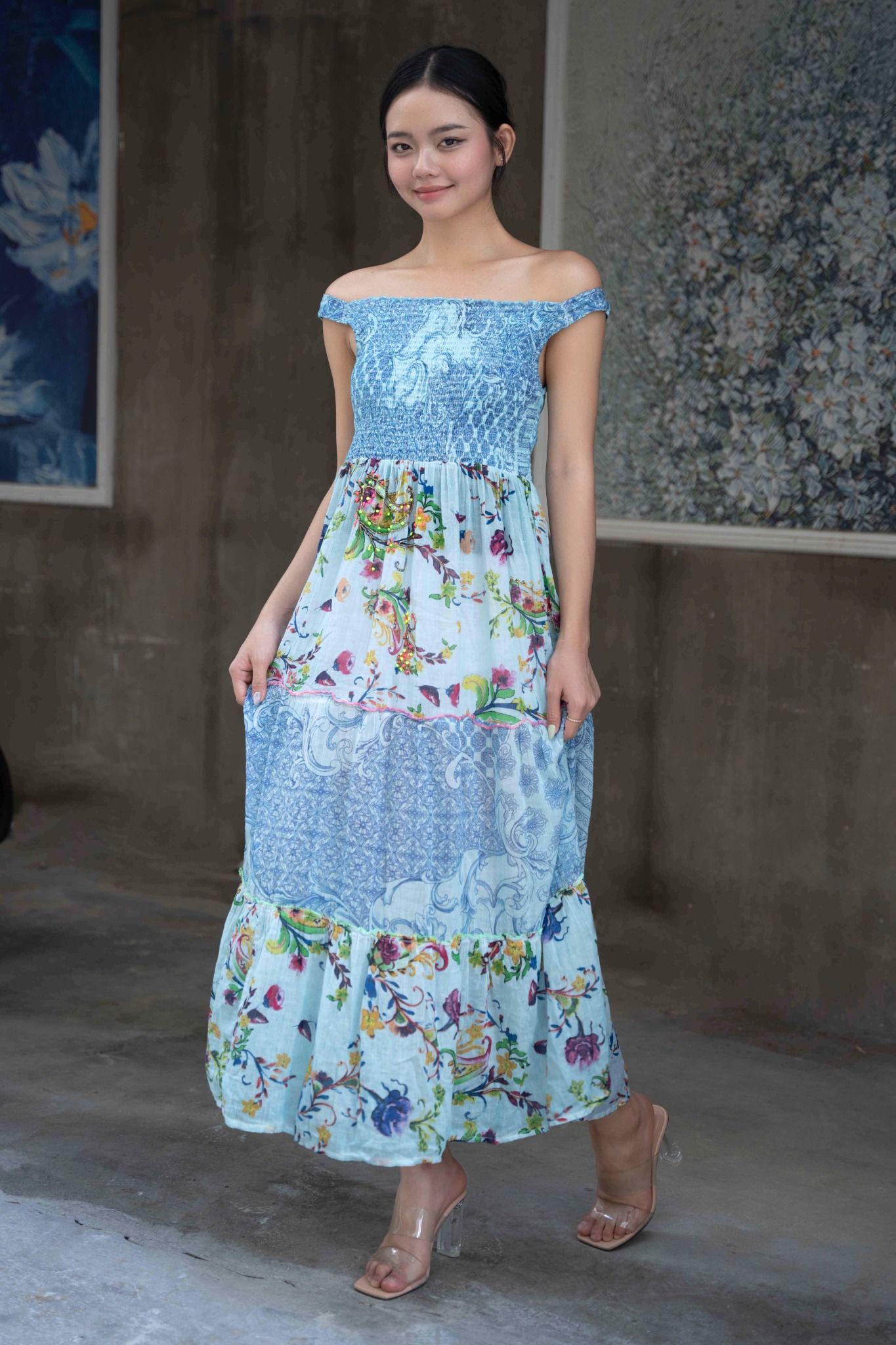 Maxi Trễ Vai Cotton Thêu Cao Cấp Luna Llena