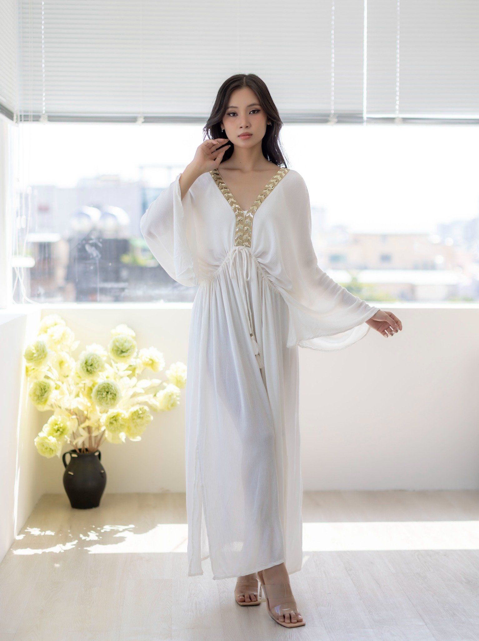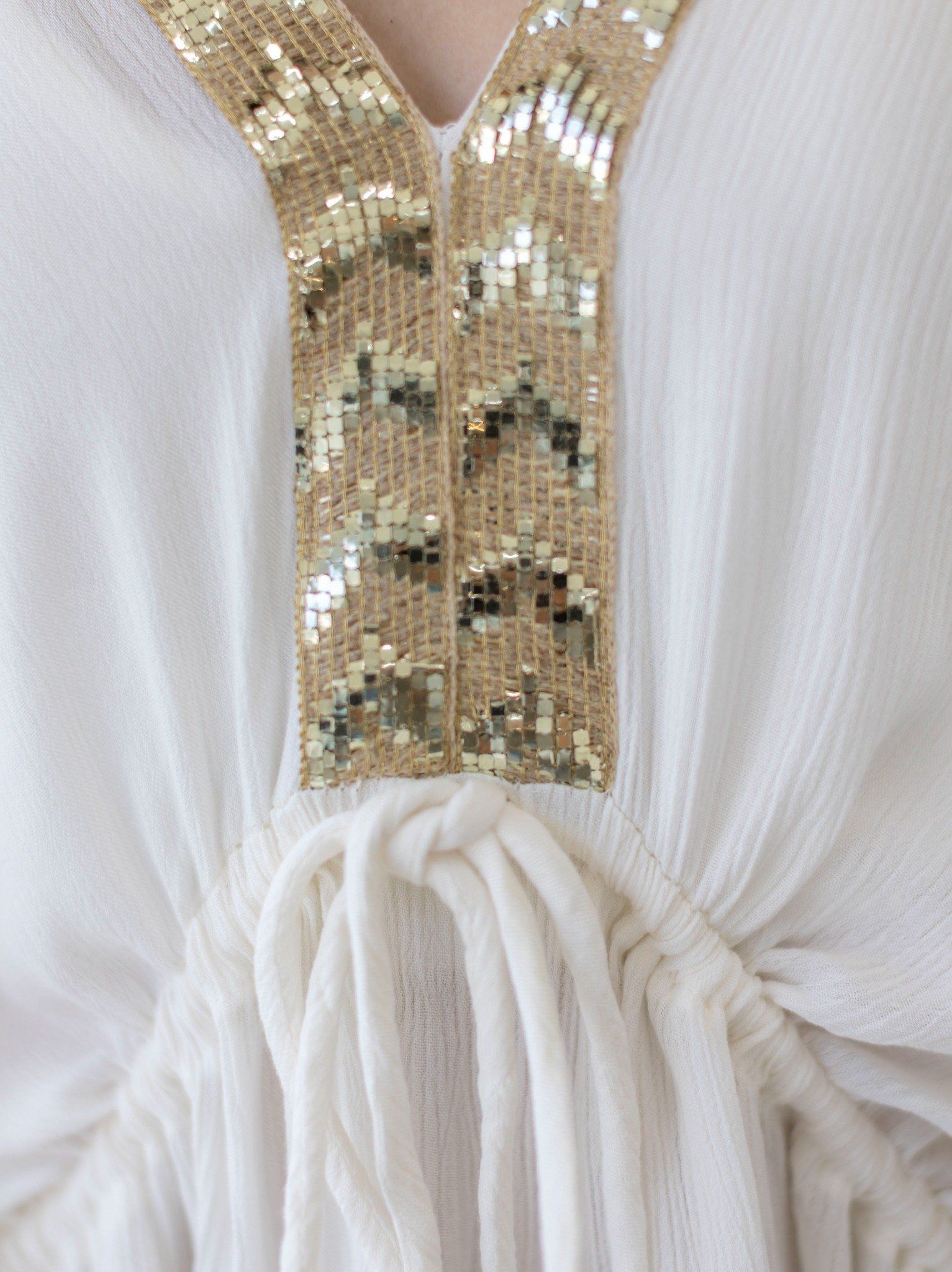 Maxi Kimono Cleopatra Trắng Kết Hạt Cotton Isla Bonita