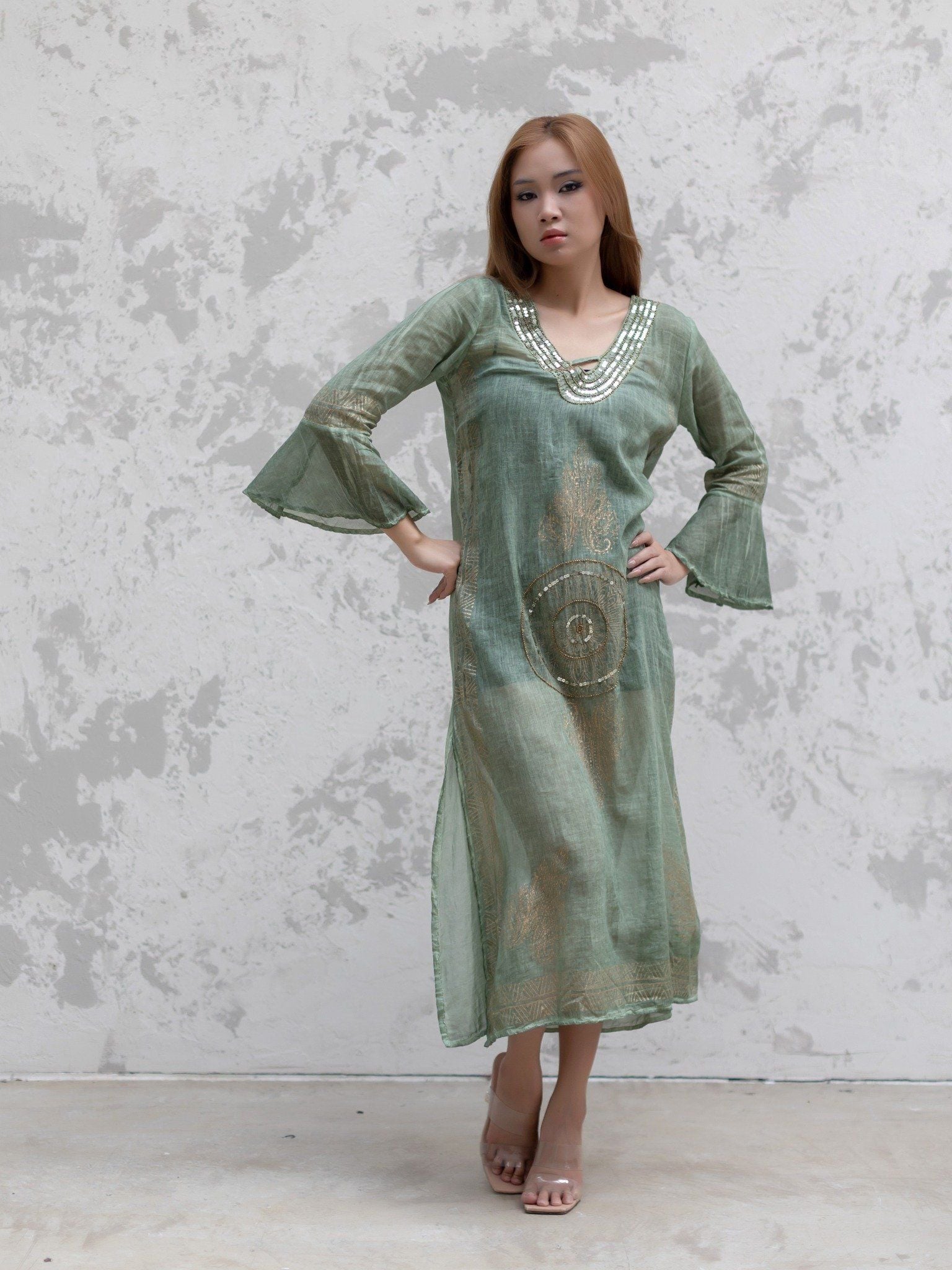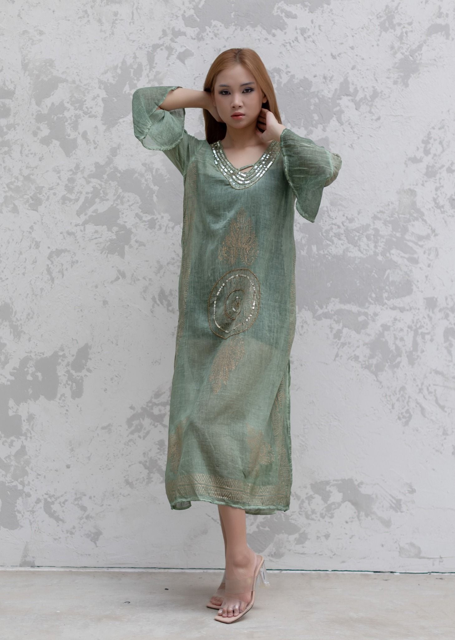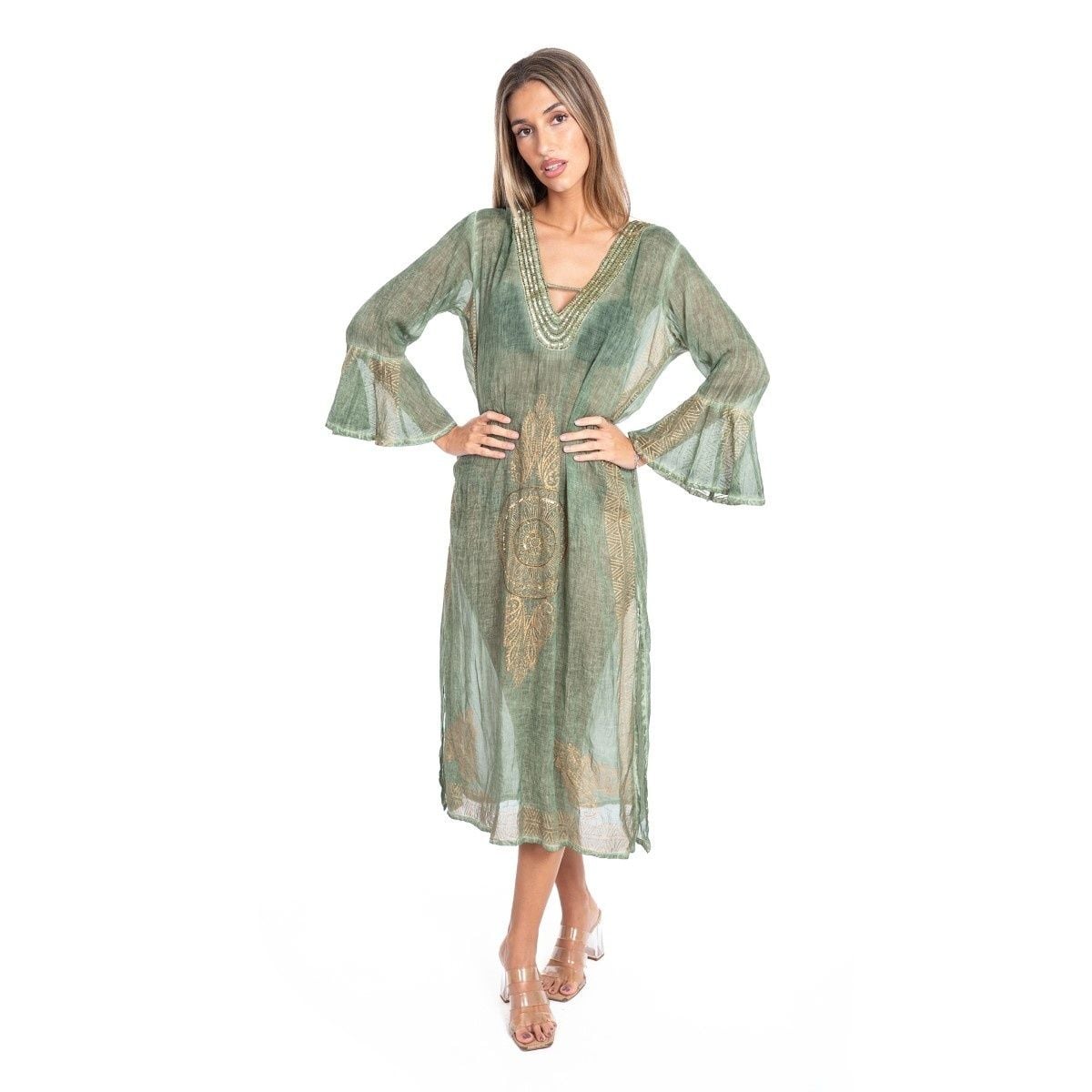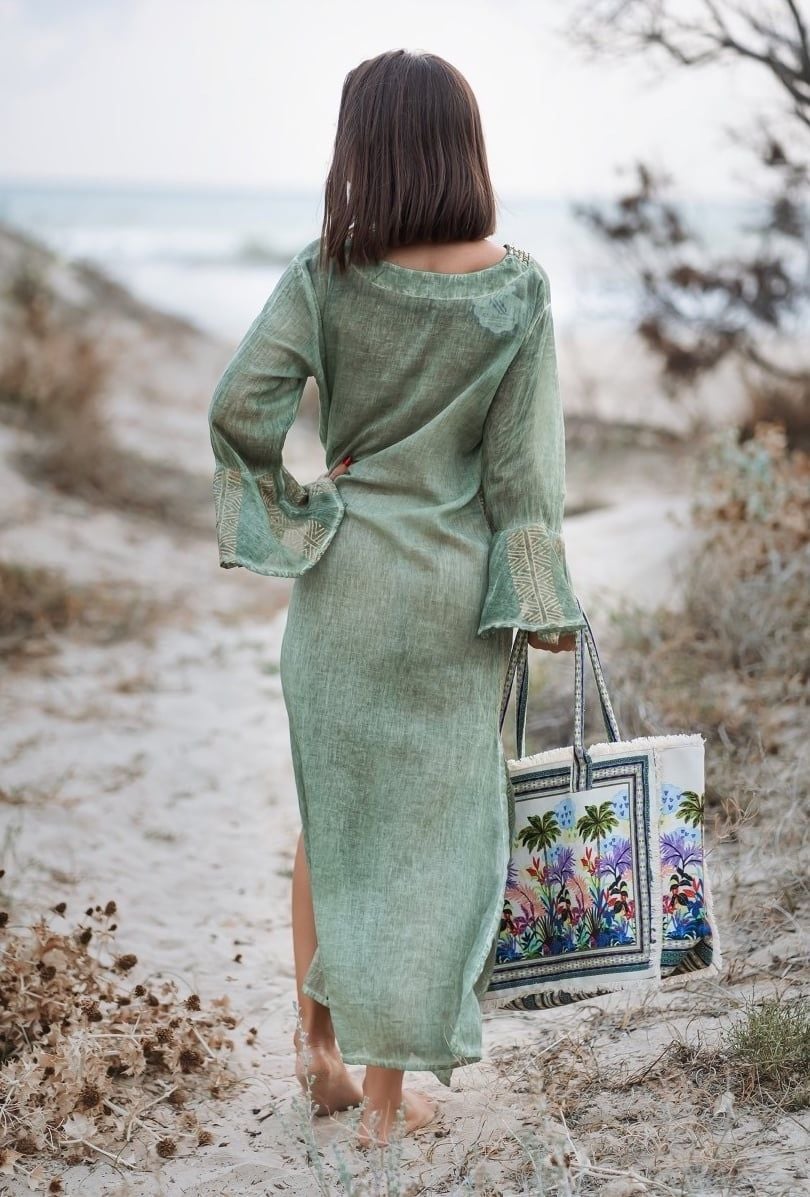 Maxi Tay Loe Kết Hạt Vẽ Ánh Kim Cotton Isla Bonita