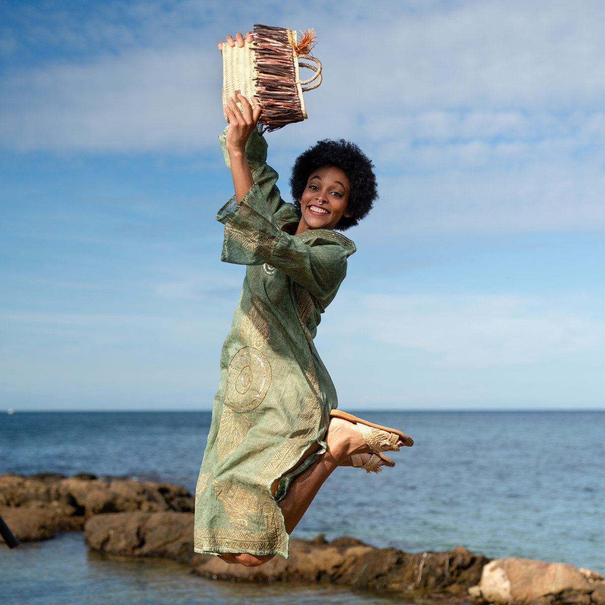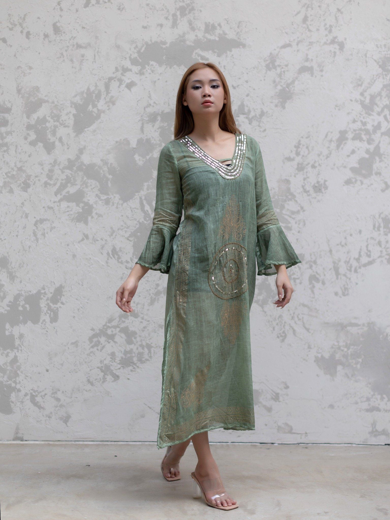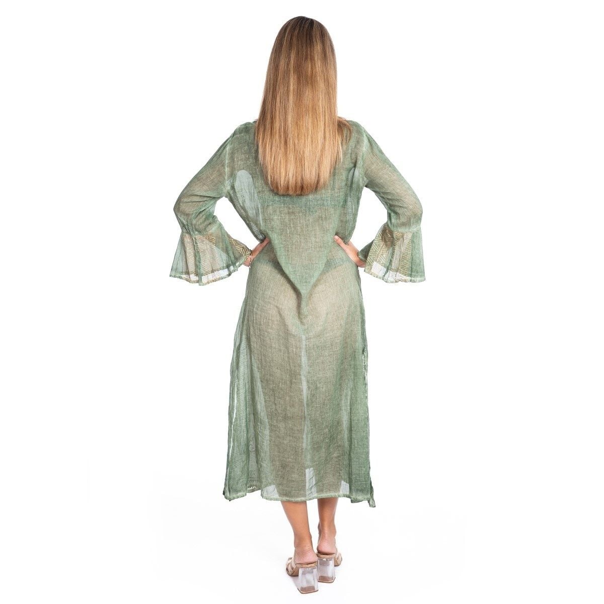 Maxi Tay Loe Kết Hạt Vẽ Ánh Kim Cotton Isla Bonita