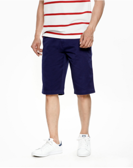 Quần short kaki màu xanh navy form đứng, dễ dàng kết hợp với nhiều loại trang phục khác.