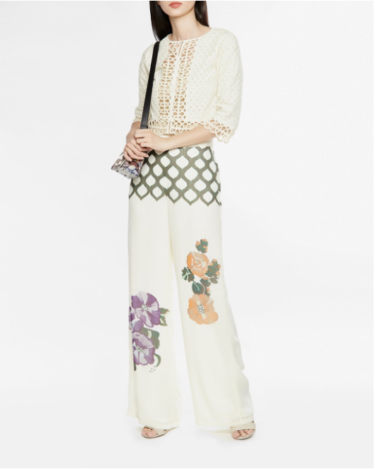 Form rộng thời trang, họa tiết hoa lá màu sắc tươi sáng.