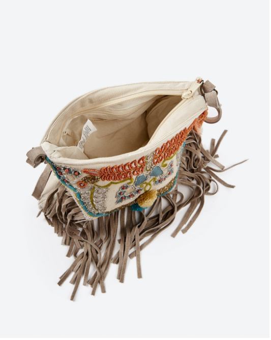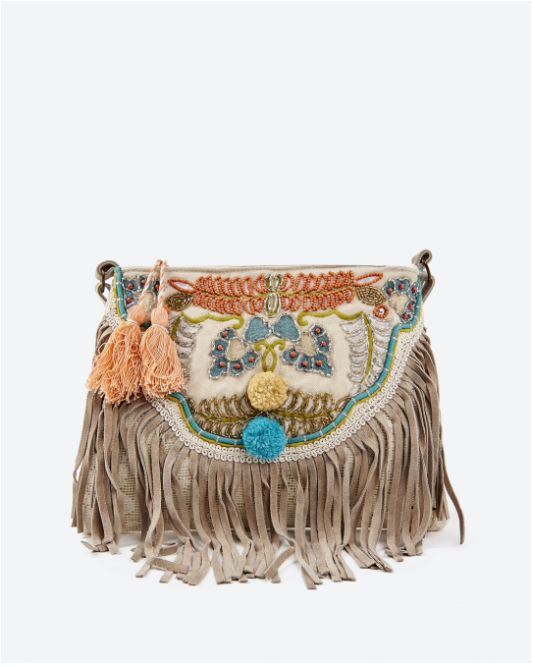Túi xách kết cườm kết hợp tua rua thời trang và tinh tế.