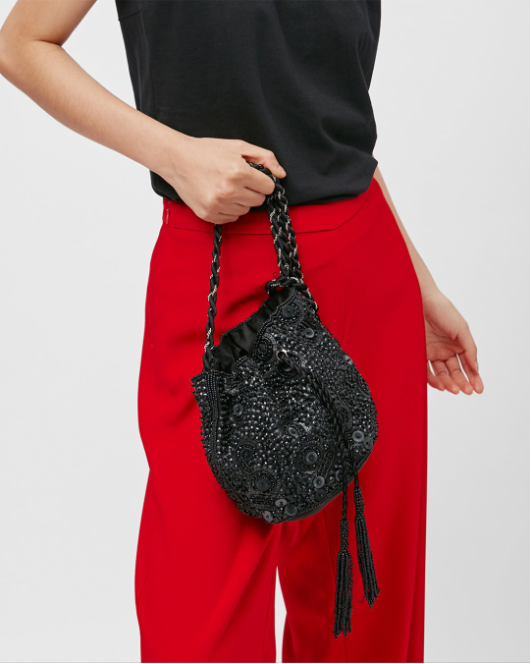 Túi xách kết cườm sang trọng, tinh tế có dây đeo dài.