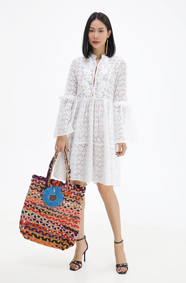 Túi xách kiểu Oversize, đan màu sắc nổi bật, cá tính