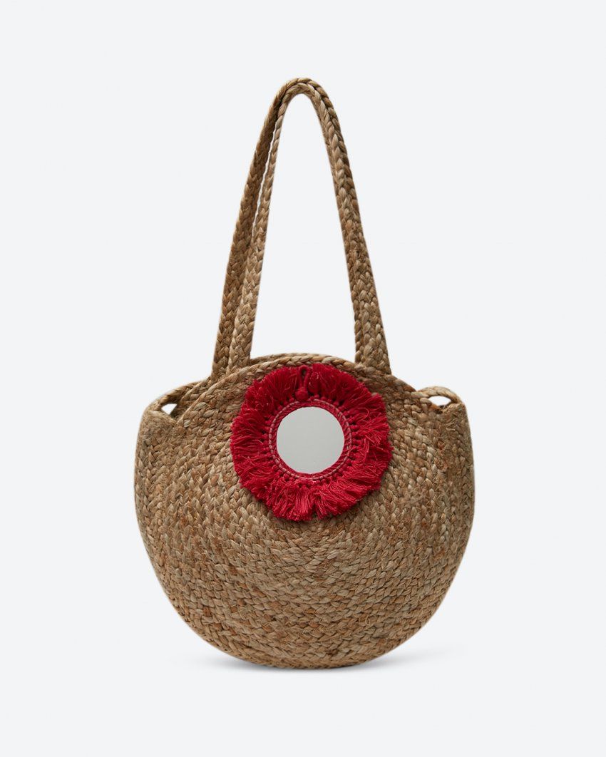 Túi xách đan kết hợp hoa nổi bật sang trọng, tinh tế có dây đeo dài.